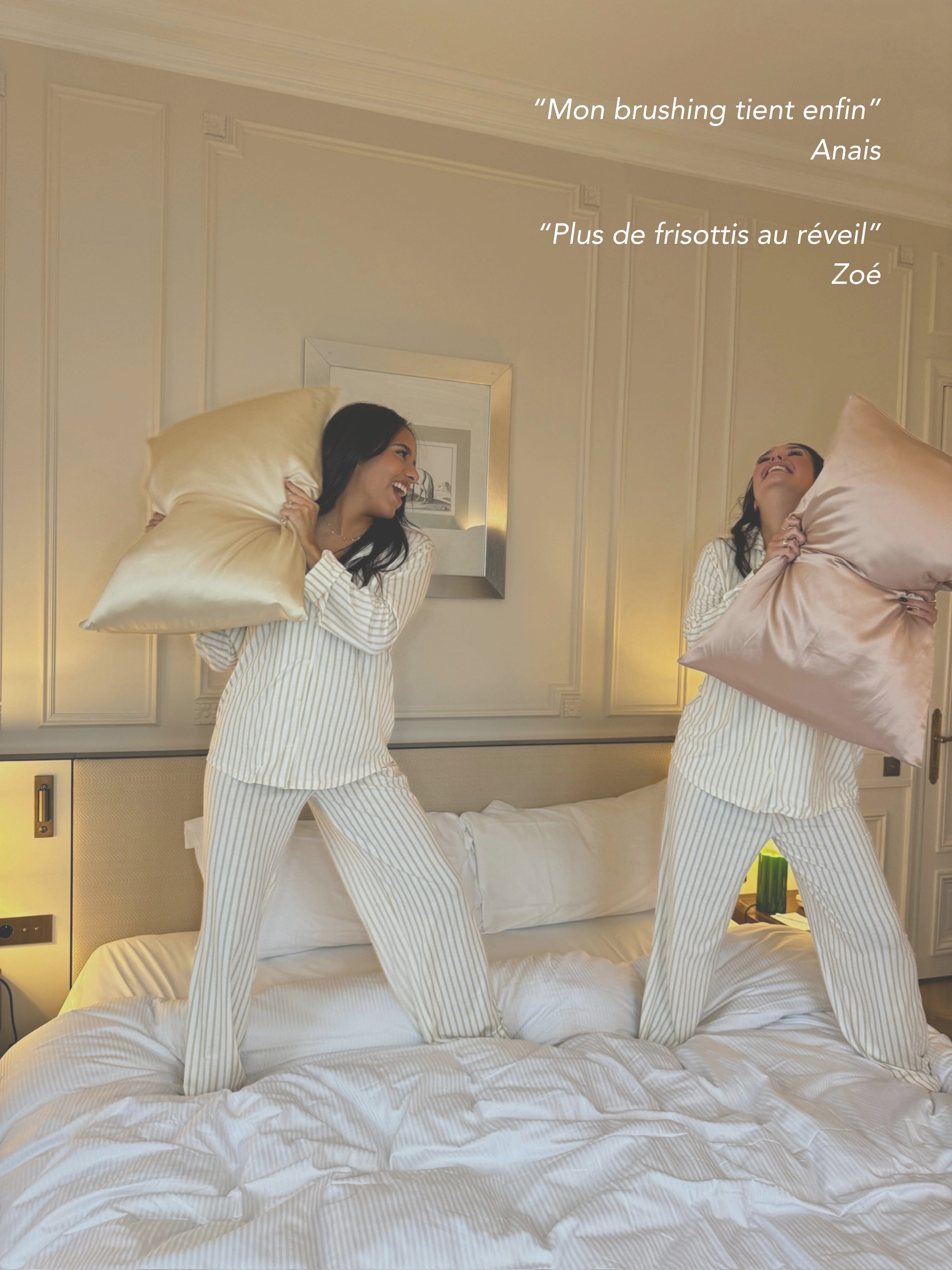 Contrairement au coton qui absorbe la skincare et les soins, la soie garde la peau hydratée et préserve son éclat.